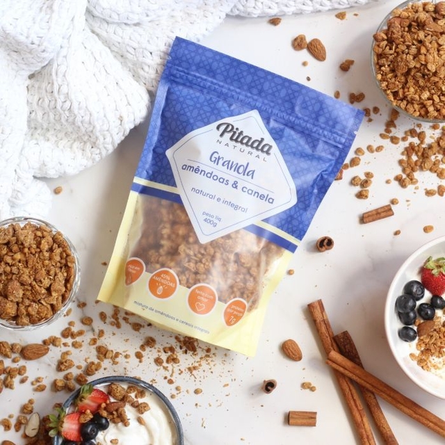 Uma granola com 45% DE AMÊNDOAS na composição, é possível? É sim! Nossa Granola de Amêndoas e Canela é uma granola como você nunca viu!