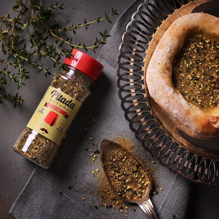 Ingredientes: Tomilho, Sumagre, Gergelim Branco Tostado, Gergelim Preto e Cúrcuma. ATENÇÃO ALÉRGICOS: Pode conter trigo, aveia, amendoim, soja, avelãs, amêndoas, macadâmias e castanhas. Contém Glúten.